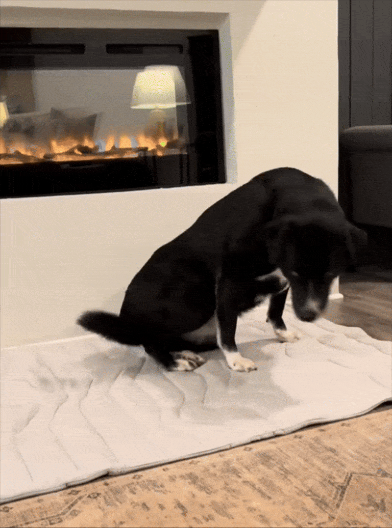 The mat is pressure-activated. As soon as your pet lays down, the cooling gel absorbs body heat and provides relief for hours. When not in use, it automatically recharges itself—no water, no freezing, no electricity required.