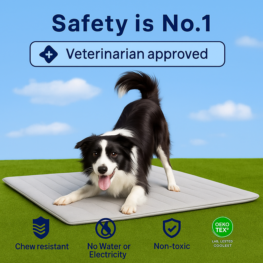 ✓ AG+® Cooling Mat — Self-cooling pad that activates on contact, dropping surface temperature to keep pets cool and calm.