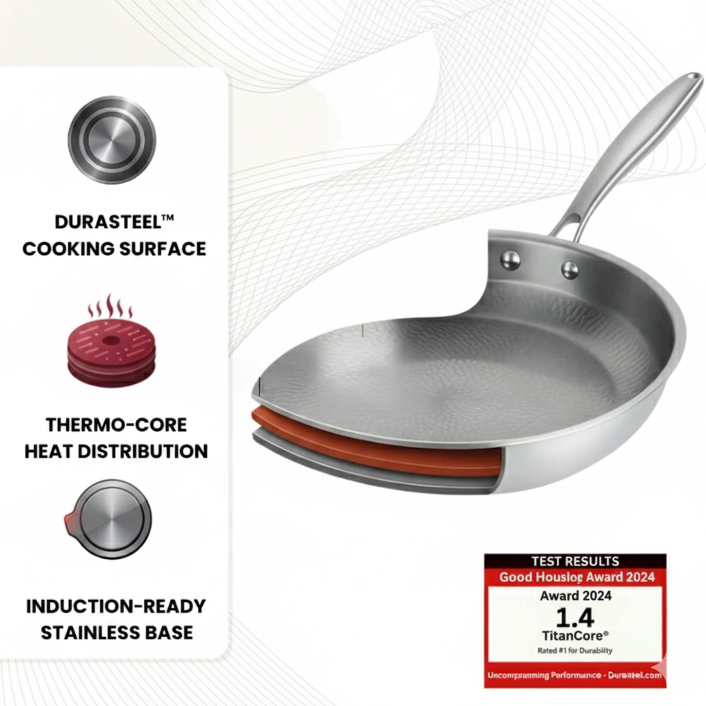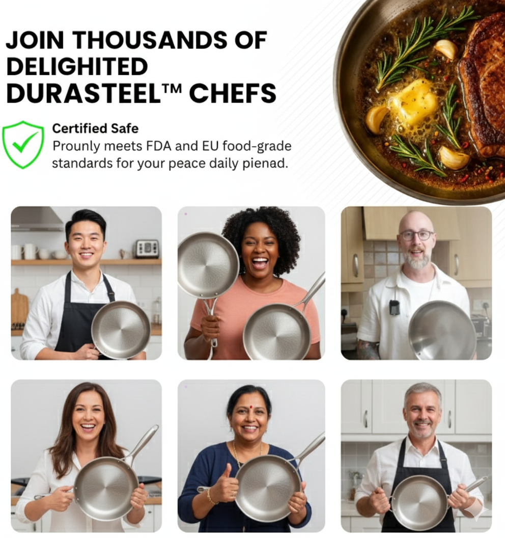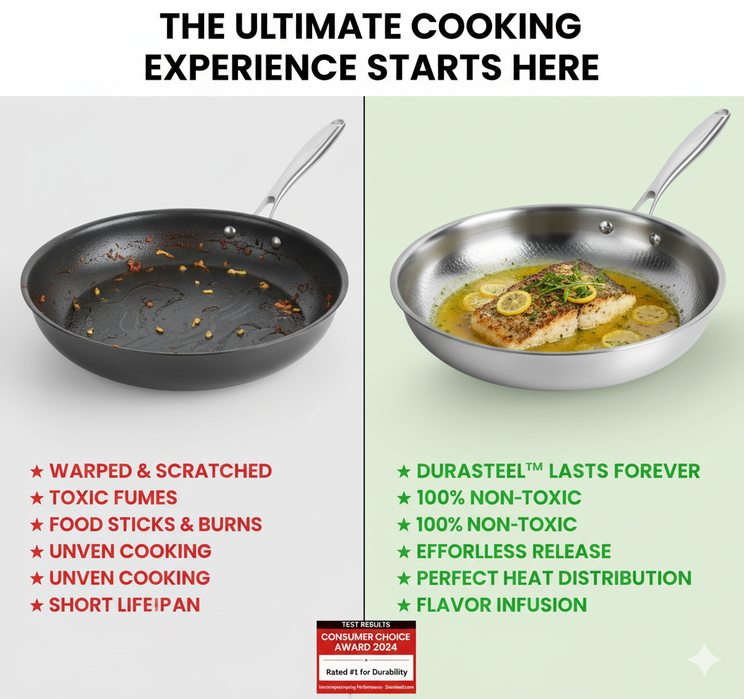 Ordinary pans demand constant scrubbing, oil, and replacements. The AG+® DuraSteel Pan changes everything — giving you naturally non-stick performance without coatings or chemicals.