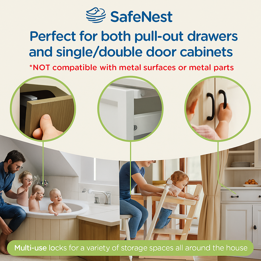 Yes! SafeNest® Magnetic Locks are designed to work with most standard cabinets and drawers. Whether in your kitchen, bathroom, or bedroom, they fit seamlessly without hassle.