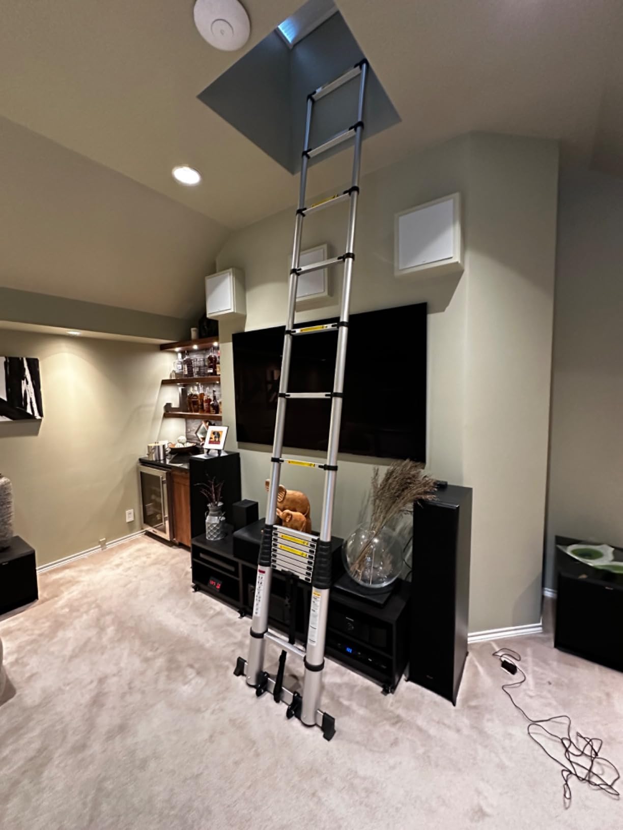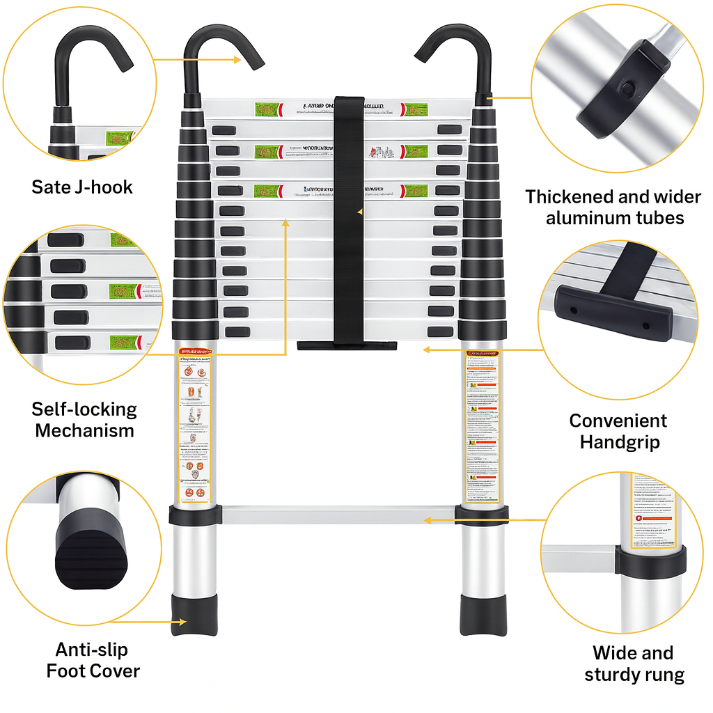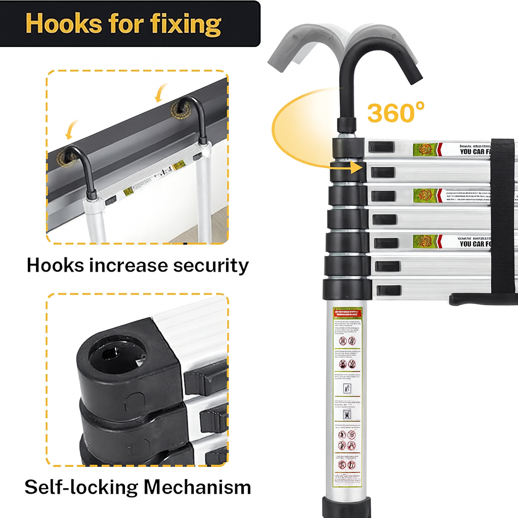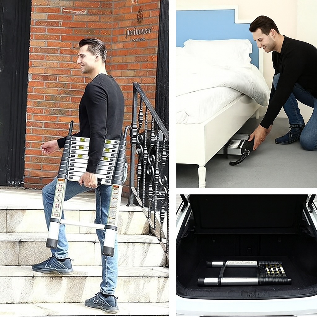 ✓ Telescopic Pro Ladder — Extends to full height in seconds, folds down small for easy storage.