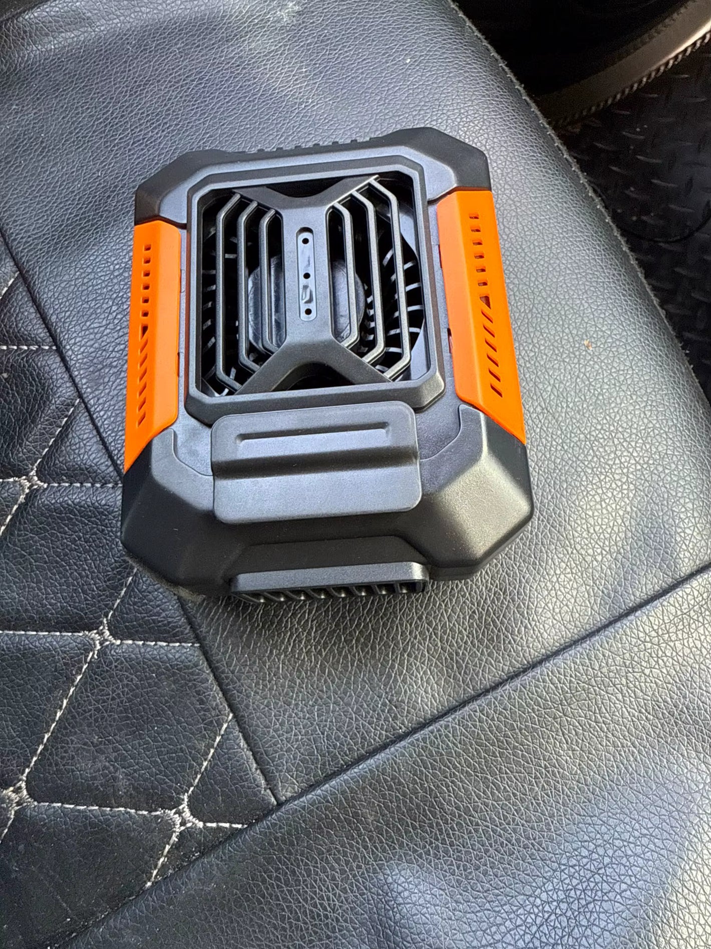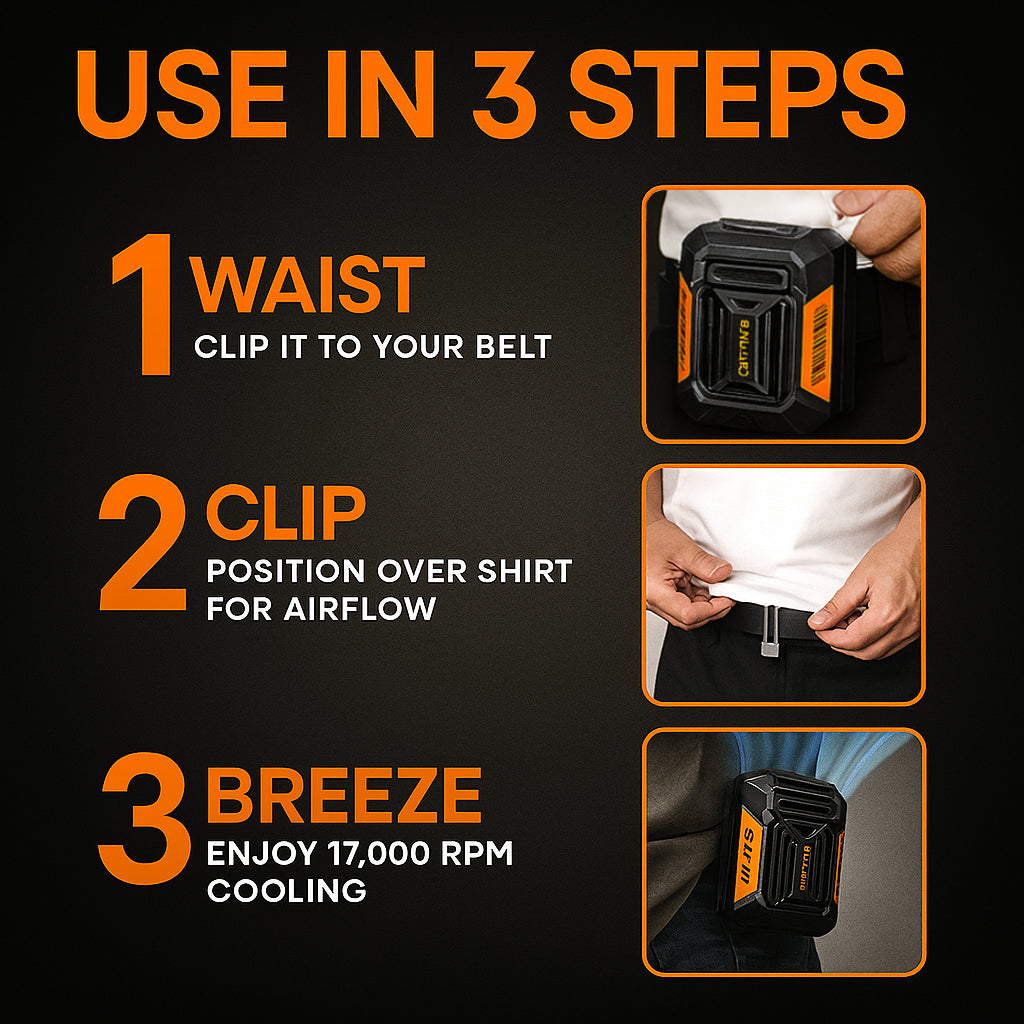 Twin‑turbo impellers blast instant cooling up your back, while a marathon‑grade battery keeps that breeze—and your phone—alive for a full 24‑hour shift.