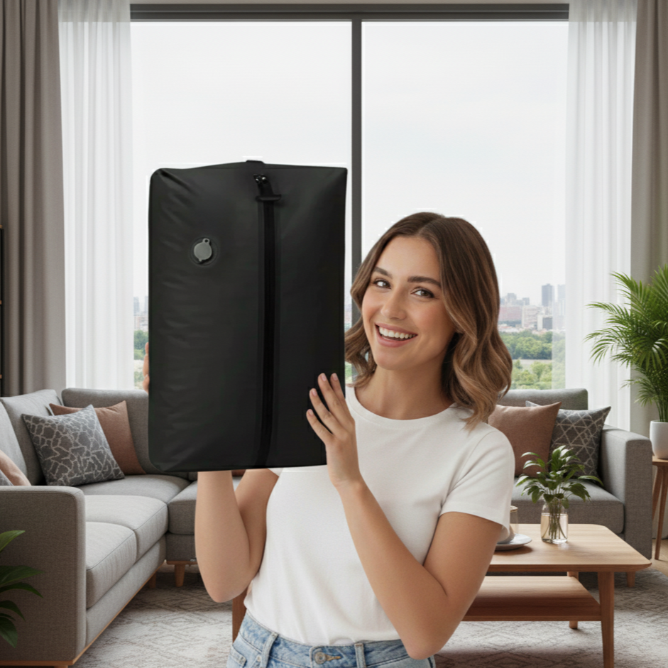 - Instant Compression: Roll or press to shrink clothes down in seconds, saving up to 70% space.